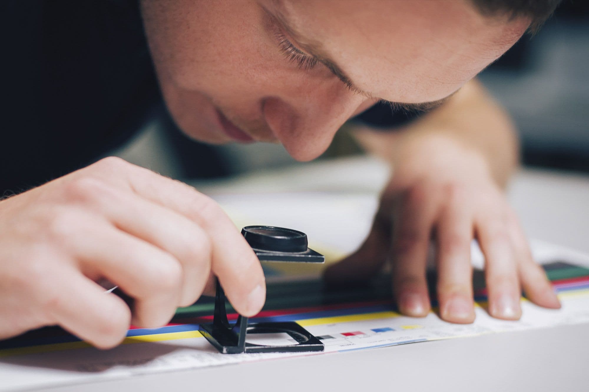 Vi är certifierade enligt Certifierad Grafisk Produktion. Det innebär att vår produktion är noggrant kontrollerad och kalibrerad för att leverera konsekventa trycksaker med exakt färgåtergivning – gång på gång. Vid vår senaste revision nådde vi 98 av 100 möjliga poäng. Ett resultat som speglar vårt fokus: maximal kvalitet, utan kompromisser.